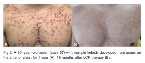 LCR is a new comprehensive treatment for keloid which has not been reported by other scholars yet. The research results show that it has the benefit of good curative effect, low recurrence rate and high safety. This paper provides a theoretical basis for widely developing this method clinically. This abstract reports on original research. There search is not a clinical trial and was not funded by any government agency, pharmaceutical or biotechnology companies or other foundations.
